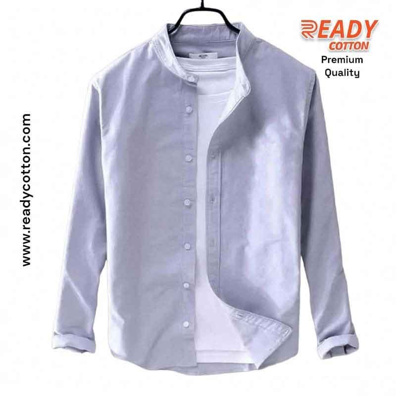 Our online shop offers an easily orderable band collar shirts men's light grey pure cotton shirt for men. Made with high-quality, original materials; it provides comfort and style. Featuring fashionable designs and used silicon wash, it is suitable for daily wear. Crafted from light, easy-to-clean Oxford fabric, this shirt ensures long-lasting quality. Note: If you buying another product please click this link Paste Band Collar Shirt for Men