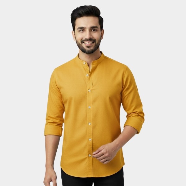 Band Collar Shirt for Men (Mustard