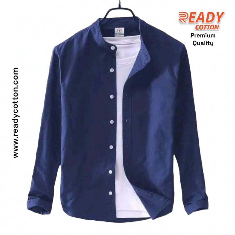 If you need a Band Collar Casual Navy Blue Cotton