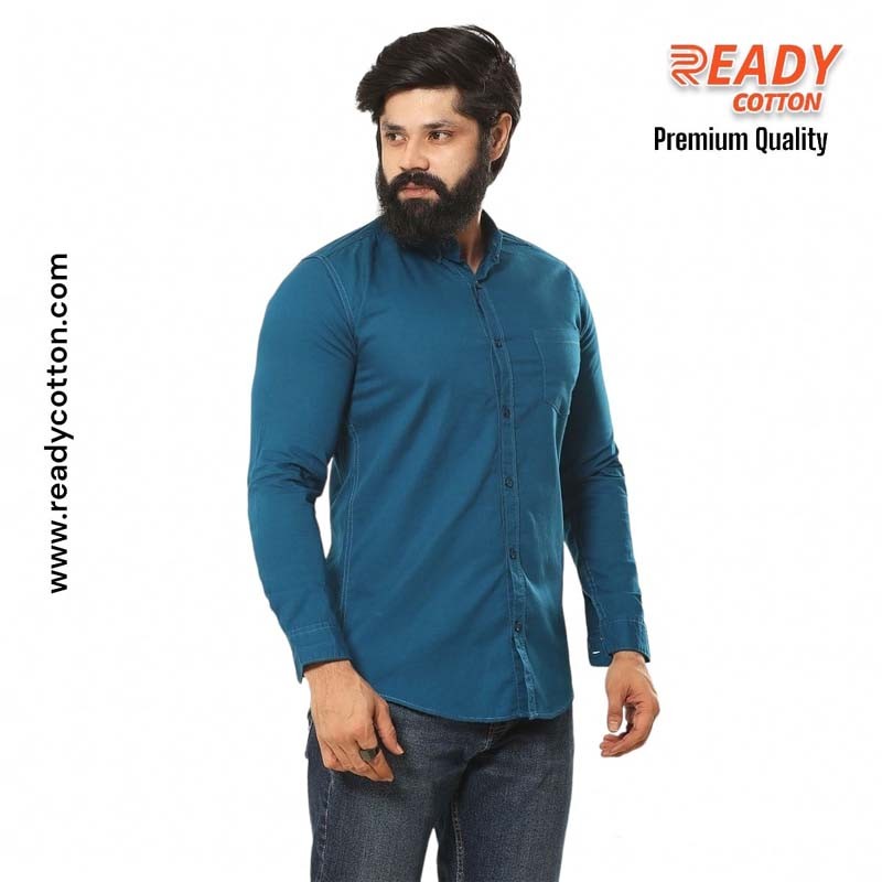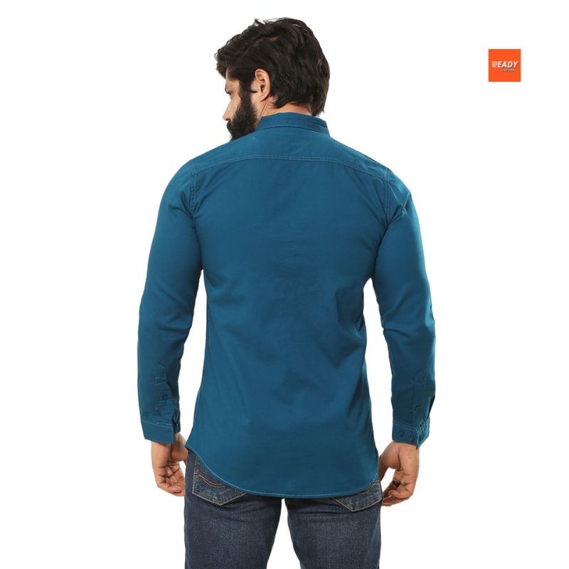 A stylish Cotton Shirt for men branded in a trendy petrol color.